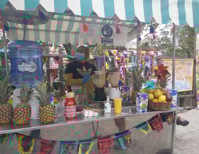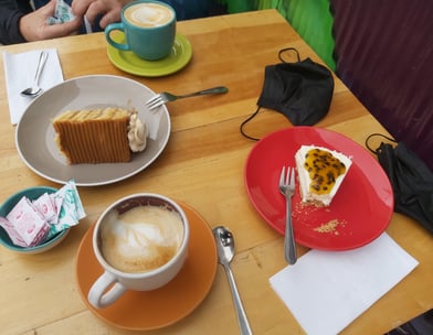 Wir stärken uns mit Kuchen und frisch gepresstem Saft