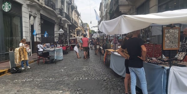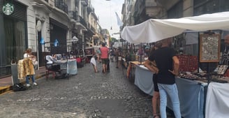 San Telmo ist berühmt für seinen Flohmarkt, die Feria, die sich über mehr als einen Kilometer Straße zieht, und natürlich für den Tango. Hier tanzen Paare den ganzen Abend an der Plaza Dorrego