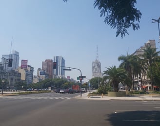 Prachtstraße Avenida de Julio mit Evita im Hintergrund