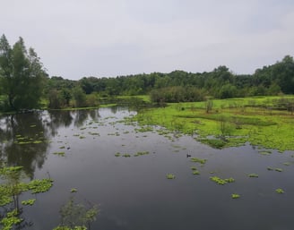 Solange die Landschaft topfeben ist steht das Wasser in jeder Senke