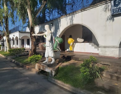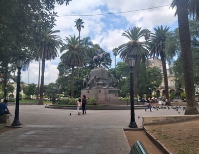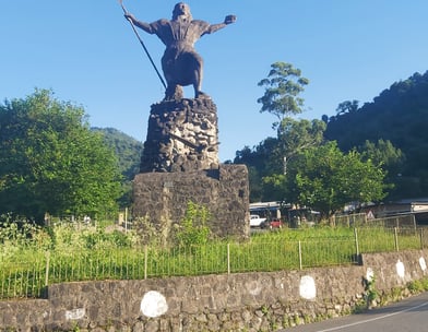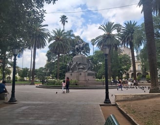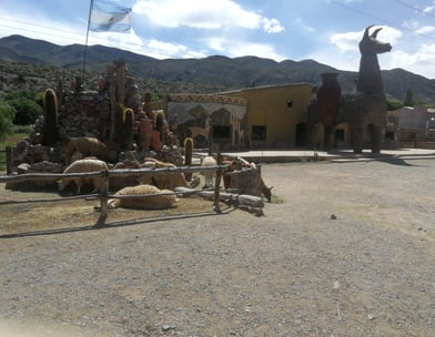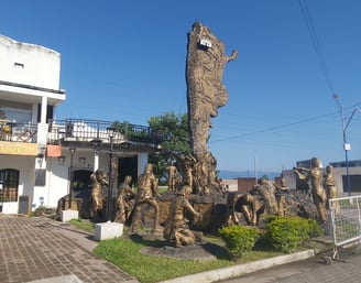 Auf dem Weg in die Berge: in Famailla stehen diverse skurille Skulpturen. Bei den meisten geht es um Unabhängigkeit und den Aufbau des Landes, manche sind einfach nur seltsam.