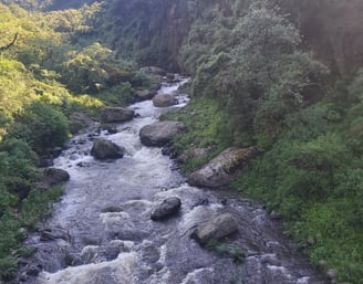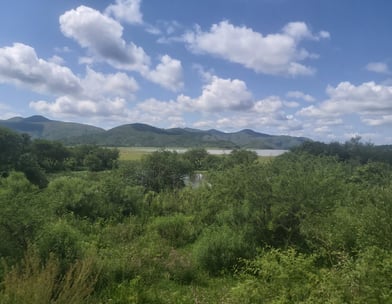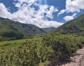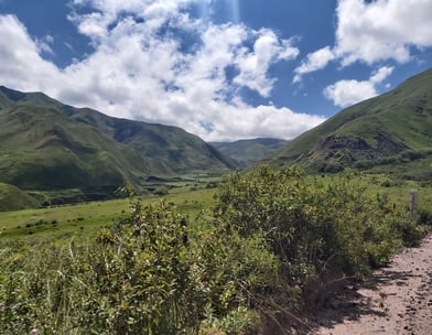 Eigentlich war Tafí unser Minimalziel für heute, aber nach zwei Stunden haben wir gerade elf Kilometer geschafft und sind uns nicht mehr sicher, ob wir es überhaupt dorthin schaffen. Zum Glück zieht langsam Bewölkung auf und zudem merken wir deutlich, dass wir an Höhe gewinnen: Die Luftfeuchtigkeit lässt nach, die Hitze auch. Die Vegetation ändert sich deutlich: statt Urwald gibt es jetzt grüne Hügel mit Kuhweiden und wenigen Bäumen. Nach fünf Stunden inklusive einer langen Kaffeepause erreichen wir am Lago Angostura das Hochtal, auf dem wir es für heute gut sein lassen wollen. Wir rasten im Schatten, trinken viel, und dann machen wir uns an die relativ flachen 10km bis nach Tafí.