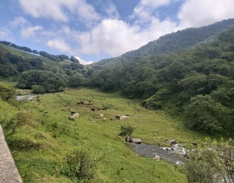 Kurz vor dem Hochtal weicht der Urwald Kuhweiden.