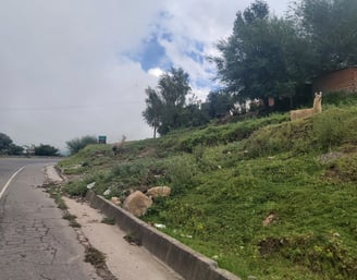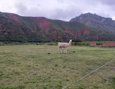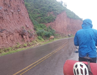 Den ersten Kilometer mit gut acht Prozent Steigung schaffe ich nur in kleinen Stücken von Schatten zu Schatten. Dann wird die Straße zum Glück flacher, und wir rollen langsam, aber gleichmäßig den langen Berg hinauf. Hier gibt es neben vielen Kühen auch mehrere Dutzend Lamas, diverse Füchse, Pferde, Esel und anderes Getier zu bewundern. Später erspäht Conni auf dem letzten Metern noch einen Puma, der vor uns die Straße quert. Auf halben Weg nach oben erstehen wir eine leckere Spezialität Südamerikas, Humitas. Wir verputzen zwei Portionen des wohlschmeckenden Maisbreis, ohne einen Krümel überzulassen.
