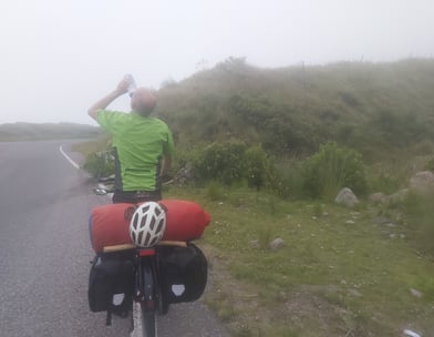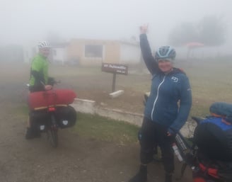 Etwa auf halber Höhe tauchen wir wieder aus den Wolken, und sofort wird es auch wärmer. Als dann die Straße trocken ist, können wir es endlich rollen lassen. Dadurch wird der Wind noch stärker, und da die letzten 10km ja flacher sind, müssen wir schließlich doch noch mal in die Pedale treten. Aber wir sind bester Laune, machen noch ein paar Fotos, und rollen nach fast sieben Stunden wieder im Hotel ein. Da duschen wir uns die Kälte mit brühend heißem Wasser aus den Knochen und verschwinden im Bett.
