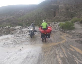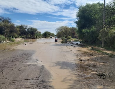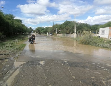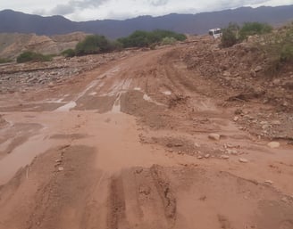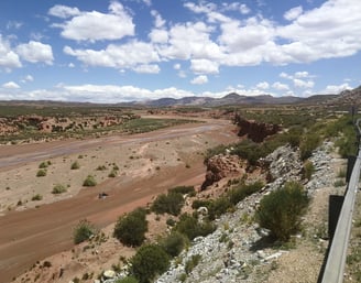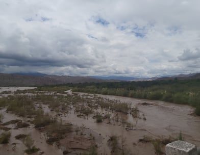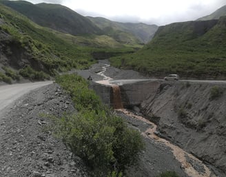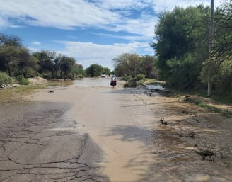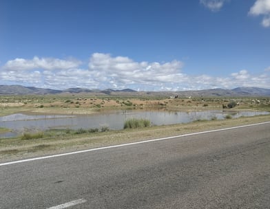Auf der Ruta 40 angekommen stellen wir gleich fest, dass das Gewitter gestern und die Regenzeit insgesamt hier nicht folgenlos war: überall steht das Wasser in den Feldern, in den Ansiedlungen, und zum Teil müssen wir knietief durch das Wasser waten, wo Flüsse über die Ufer getreten sind und die Straße überfluten.