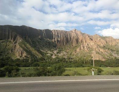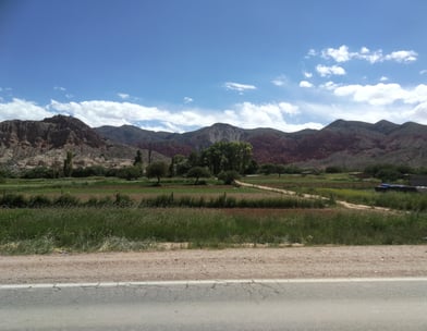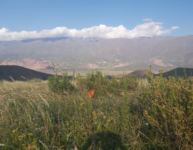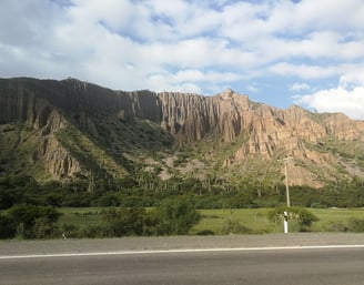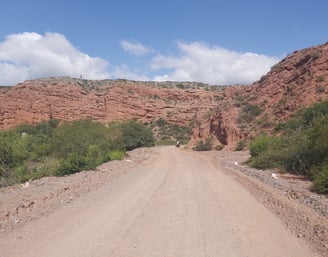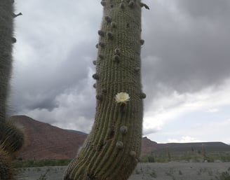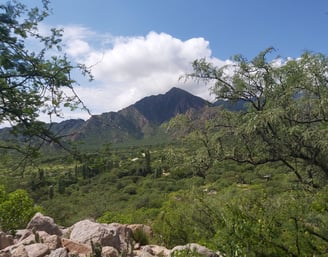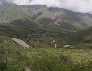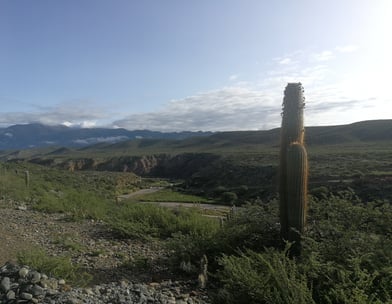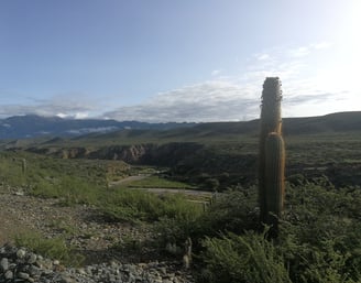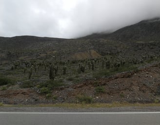 Nach einer unruhigen Nacht voller Partylärm im Hostal und einem kargen Frühstück mit Tee und Keksen brechen wir wieder auf. Es geht erst mal 15 km weiter den Berg hinunter zur legendären Ruta 40, die sich über fast 5000 km durch ganz Argentinien zieht. Hier in der Provinz Tucumán verläuft diese Straße, der wir für mehrere hundert Kilometer folgen wollen, durch ein fruchtbares Andental. Die Umgebung ist wunderschön, gebirgig, semiarid, voller riesiger Kandelaberkakteen. Wir sausen jubelnd den Berg runter und freuen uns an dem Ausblick, den wir gestern so gar nicht genießen konnten.