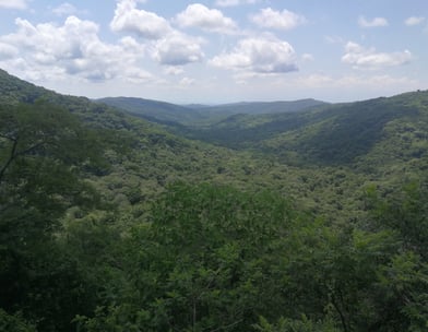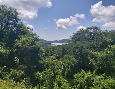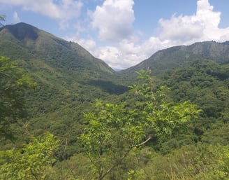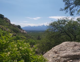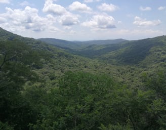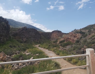 Auf dem Weg zur Höhle klettert der Weg bergauf und wir haben eine schöne Sicht ins Tal
