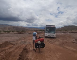 Danach müssen wir nur noch etwa vier Stunden darauf warten, dass der Bus losfährt. Beim Einladen des Gepäcks sehen wir, dass unsere Räder auch schon an Bord sind. Das ist lustig, weil sie uns ursprünglich gesagt haben, dass im Bus kein Platz für die Räder sei. Aber für uns ist es natürlich gut zu wissen, dass die Räder mit uns in Tucumán ankommen. Wir haben Liegesitze, die auch leidlich bequem sind, und verschlafen die meisten der 18 Stunden.