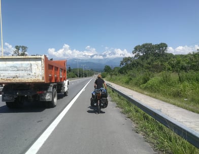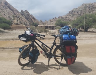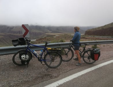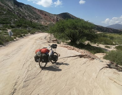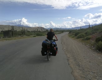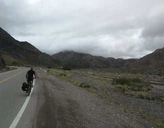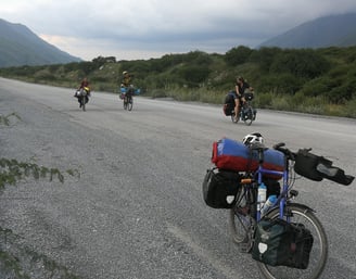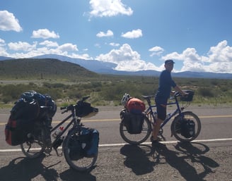 Dann treffen wir einen entgegenkommenden Radler, einen Basken aus San Sebastian, dessen Namen wir leider gleich wieder vergessen haben. Wie üblich fragen wir unser „woher-wohin“ ab, und staunen nicht schlecht, zu hören, dass er von Alaska kommt. Fast zögerlich erzählt er, dass er seit 2006 unterwegs ist. Wir sind voller Ehrfurcht und fragen uns, was er wohl tun wird, nachdem er sein endgültiges Ziel, Ushuaia, erreicht hat. Kann es nach 16 Jahren auf dem Rad noch ein „normales“ Leben geben?