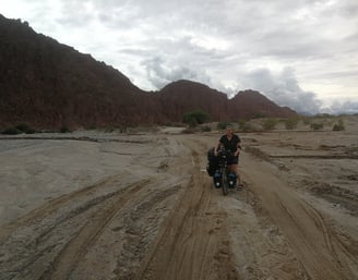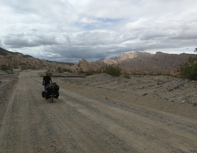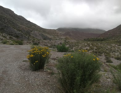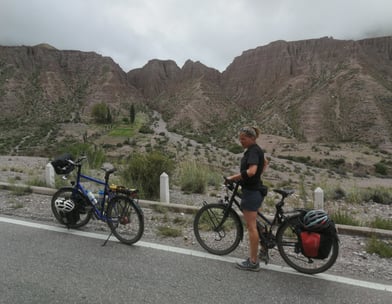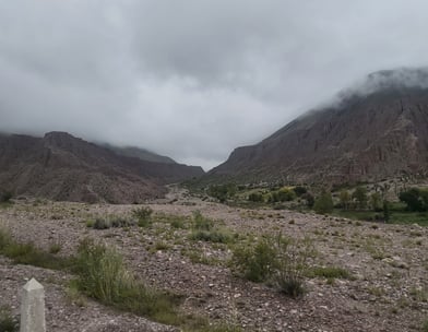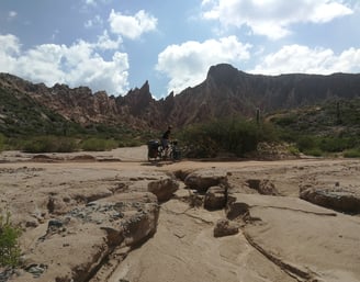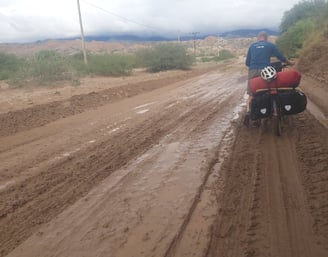 Einer von Connis Herzenswünschen war die Überquerung des Paso de Jama von Purmamarca nach San Pedro de Atacama, ein Wahnsinnsritt von gut 400km gegen den Westwind, von denen über 250km über 4.000HM liegen, und insgesamt mehr als 5.000HM in sechs großen Anstiegen. Da aber die Grenze von Argentinien nach Chile geschlossen ist, fällt diese Strecke – leider! – heuer aus. Aber wenigstens den ersten Teil, die Überquerung, der Cuesta de Lipan, 4.170m, und die Befahrung des Salzsees Salinas Grandes auf der anderen Seite auf 3.400m, wollten wir realisieren. Als wir gestern erfahren, dass die einzige Unterkunft auf der Strecke für die nächsten vier Tage ausgebucht ist, gerät auch dieser Plan ins Wanken. Denn selbst wenn man rechnet, dass von den 140km für den Weg hin und zurück „nur“ 70km bergauf gehen, bleiben doch etwa 2.700HM für einen Tag eine echte Prüfung. Aber wir wollen losfahren und auf der Passhöhe entscheiden, ob wir umkehren oder nicht. Leider sagt der Wetterbericht für die nächsten Tage ganztägig dichte Bewölkung und hohe Regenwahrscheinlichkeit an. Das ist gut gegen die Hitze, aber kann die Tour auch zur Tortur machen.