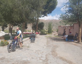 Eine kleine Pause in Azul Pampa, dem ersten Ort heute: Ein Kiosk, 5 Häuser, mehr gibts nicht