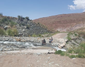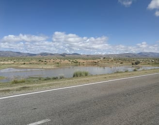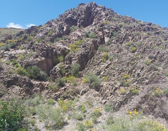 Nach 10km wird die Straße steiler und die Sonne intensiver. Immer öfter halten wir kurz an, um zu verschnaufen. Die Höhe macht uns zu schaffen, wir sind jetzt auf weit über 3000 HM. Langsam erreichen wir das Talende, und die Straße wendet sich nach Westen in die Bergflanke hinein. Der Rio Grande ist hier nur noch ein Rinnsal und wird hier seinem Namen nicht mehr gerecht, aber er hat einen erstaunlichen Canyon gegraben.