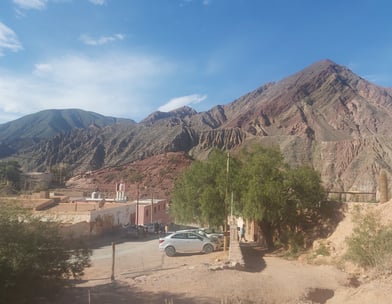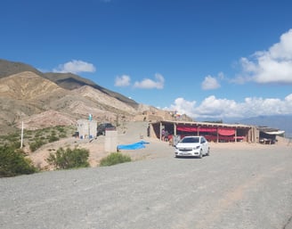 Da wir unsere Wäsche erst ab 10 Uhr aus der Wäscherei holen können, erwarten wir heute keine große Leistung. Tilcara nach 25km ist das Minimalziel. Als wir dort nach knapp 2 Stunden ankommen, nehmen wir nur einen Kaffee und fahren weiter. Der Ort ist noch touristischer als Purmamarca und das will etwas heißen! Zu viel Rummel in zu wenig Tagen.
