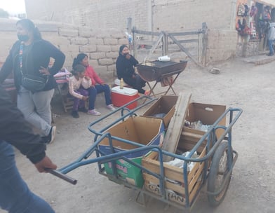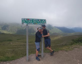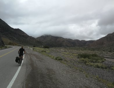 Drei Kilometer vor dem höchsten Punkt erreichen wir Tres Cruces, eine ziemlich graue Ansammlung von Häusern. Wir biegen trotzdem ab und machen uns auf die Suche nach Essbarem, und finden tatsächlich eine „Pizzeria“, einen Raum von vielleicht 20qm, voller Bücher. Darin befinden sich vier junge Argentinier*innen, die gerade Empanadas zubereiten, uns aber sofort eine Pizza backen. Mit einem intensiven Gespräch und einigem Jonglieren überbrücken wir die Zeit, bis das leckere Essen fertig ist, und verschlingen die Ziegenkäsepizza dann in neuer Bestzeit. Und dann machen wir uns wieder auf den Weg.