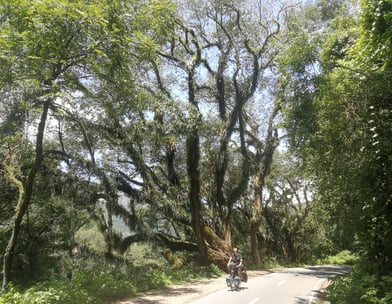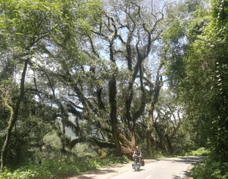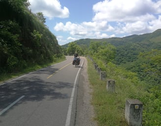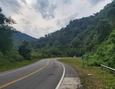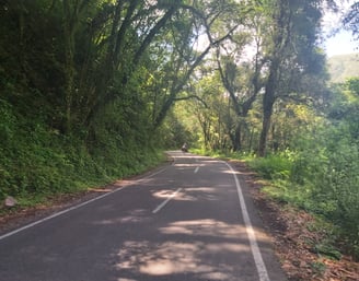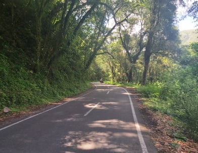 Die Straße windet sich durch dichten Urwald den Berg hinauf