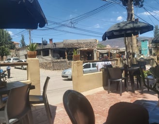 Mittagskaffee in Tilcara. Eigentlich ein netter Ort, aber der Rummel ist unglaublich!