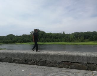Nach Quartiersuche und Duschen machen wir uns zu Fuß auf zur Grenze. Dort gibt es intensives, verwirrendes Treiben, verschiedene Container, aus denen heraus Menschen mit Masken vor dem Gesicht durch eine Luke Informationen geben, die wir vielleicht verstünden, wenn nicht hinter uns Straßenarbeiten stattfänden. Aber wir finden einen Aushang mit einer langen Liste der Dinge, die wir brauchen, und eine nette Polizistin gibt uns den Tipp, dass auf einem Parkplatz unten am Fluss PCR-Tests gemacht werden. Wir erfahren, dass es heute schon zu spät ist für einen Test und wir morgen um 8 Uhr wiederkommen sollen. Also wieder nichts mit Ausschlafen!