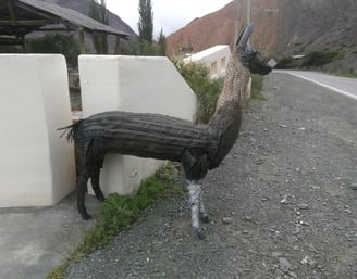 Fundstücke auf dem Weg zum Pass: Lama aus alten Fahrradreifen