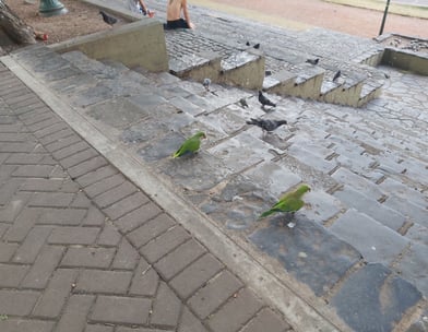 Im Parque Lezama in San Telmo entspannen wir uns von der hektischen Großstadtwelt. Neben den Tauben und Spatzen kämpfen hunderte Sittiche um die Brotreste der Menschen
