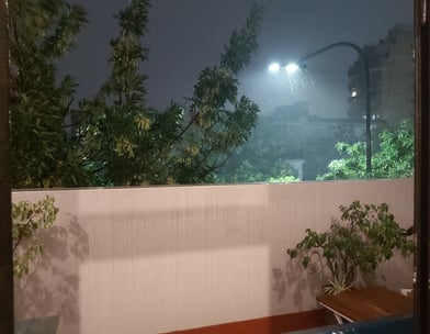 Große Hitze und kurz darauf starke Gewitter: Blick von unserem Balkon