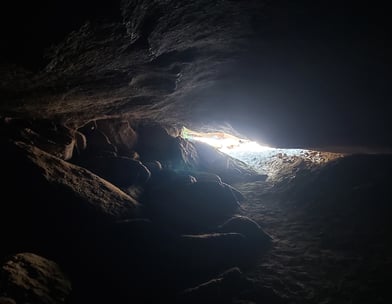 Nix für Klaustrophobiker: Der Höhleneingang ist nur hüfthoch