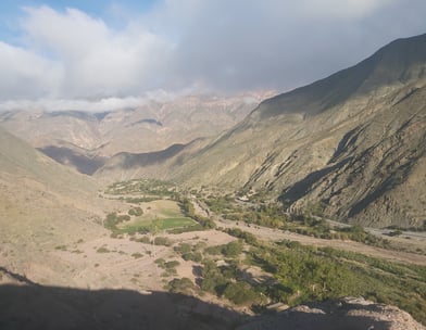 Gegenüber ist in spektakulärer Landschaft ein kleiner Bauernhof. Maisanbau auf 3200HM