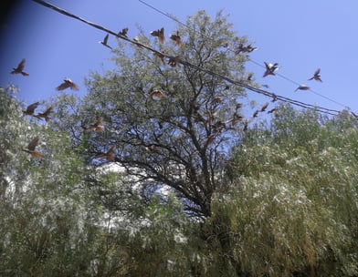 Die Bedingungen hier sind einfach toll zum Radfahren: nicht zu heiß, relativ trockene Luft, die Straße ist gut geteert (soweit nicht unter Wasser) und flach, die Berge geben einen tollen Rahmen und motivieren zum in die Pedale treten. Hunderte Papageien fliegen laut kreischend über uns hinweg. Das wir in einem Café am Straßenrand das Frühstück quasi geschenkt bekommen, ist schon fast zu viel des Guten! Und so schaffen wir die fast 70 Km bis Cafayate in knapp über 3 Stunden, einem neuen Geschwindigkeitsrekord auf dieser Reise! Nach einem ausgiebigen Mittagessen an der Plaza dieser tollen Stadt suchen wir uns ein nettes Quartier, in dem wir uns 2 Tage ausruhen wollen .