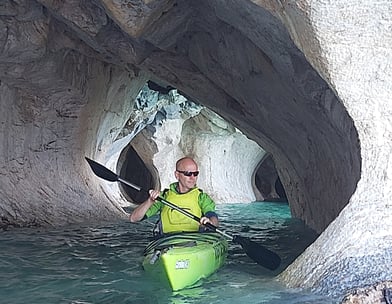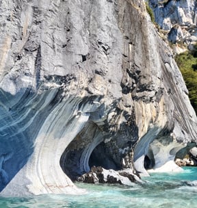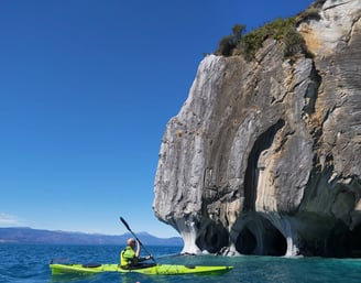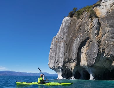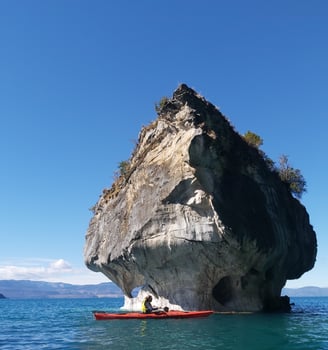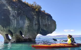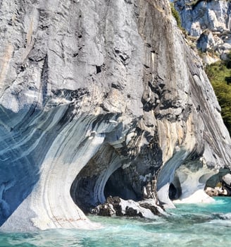 Am nächsten Tag steht früh am morgen ein Paddelausflug zur örtlichen Attraktion, den Capillas de Marmol auf dem Programm, den ich gestern noch gebucht habe. Ganz schön teuer, aber ein bisschen Touristenrummel will ich mir doch gönnen! Der Ausflug dauert 3 Stunden und ist wunderschön! Die Marmorhöhlen in den Felsen sehen faszinierend aus, durch einige kann man mit dem Paddelboot durchfahren. Die Tour darf man nur mit einem Führer machen, sie ist auch strikt reglementiert, da in den letzten Jahren viel Unfug passiert ist. Zum Beispiel hat ein Tourist wohl die Höhle mit Farbspray „verziert“.