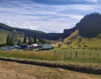 Aber zunächst fängt der Tag mal gut an. Daniels Schmerzen sind zumindest nicht schlimmer als gestern und der Schotter ist einigermaßen im fahrbaren Bereich. Schon eine Stunde nach dem Frühstück meldet sich bei mir der kleine Hunger, und als wir an einer der hier verbreiteten sündteuren Fliegenfischerlodges vorbeiradeln, kommen wir auf die Idee, auf einen Kaffee einzukehren. Das freundliche Personal lässt uns in den Frühstücksraum, serviert uns Kaffee und Weihnachtskuchen (so was ähnliches wie Osterbrot, nur anders) und will dann anschließend kein Geld von uns haben. Anscheinend wirken wir arm und halbverhungert!