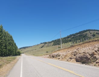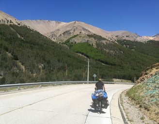 Als der Wecker klingelt, ignorieren wir ihn und kuscheln uns nochmal in die Decken. Niemand will so richtig weiterfahren, nur die Vernunft treibt uns dann irgendwann raus. Als wir loskommen, ist es schon nach 10 Uhr und heiß. Mein Rücken tut immer noch weh, die Straße ist saugrob, hat viel Verkehr (der aber schon bald aufhört) und geht bergauf; was braucht man mehr? Wir wühlen uns im Schneckentempo 6km bergauf. Dann ist die erste Höhe erreicht und wir folgen dem Ufer eines großen Sees.