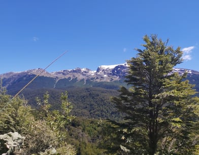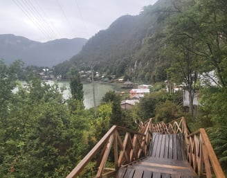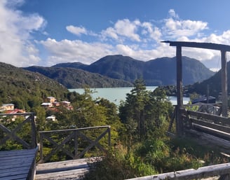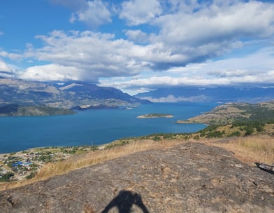 Und schon klappt es dann! Der Weg ist steil und anstrengend, aber er lohnt sich; Am Gipfel habe ich eine grandiose Aussicht auf den See und Rio Tranquilo. Hin und zurück dauert es keine 2 Stunden, und so bin ich gegen 20 Uhr zu Hause, um noch ein fettes Weihnachtsessen zu kochen. Es gibt Lachs, Bratkartoffeln und Gemüse, zum Nachtisch Obstsalat. Wir sind übrigens fast die einzigen, die drinnen essen: Weihnachten ist in Chile eher ein Grill- und Sommerfest.