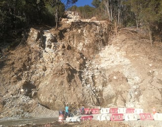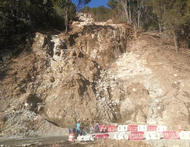 Es geht aber nur kurz durch den Schotter! Rechts sieht man die Reste des Erdrutsch