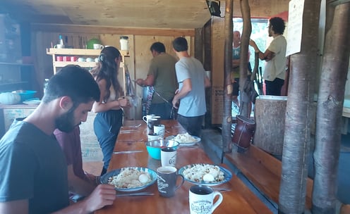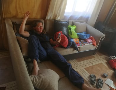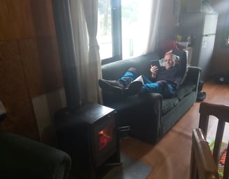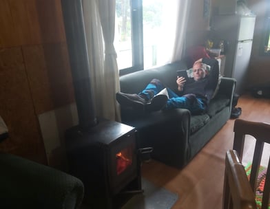 Die Wirtin heizt uns den Ofen ein, Conni kocht uns ein Abendessen – und dann ist das Abenteuer Carretera Austral definitiv zu Ende.