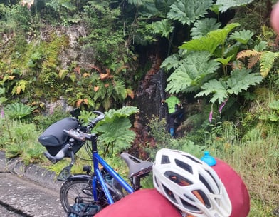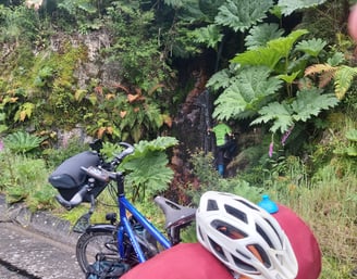 Gegen Mittag sitzen wir dann auf den Rädern und fahren durch den Regen. Nebelfetzen und grauen Wolken treiben über die Bergspitzen. Ich fühle mich, als bräuchte ich noch mindestens einen weiteren Ruhetag, weil sich die Räder nur schwer drehen lassen. Irgendwann merke ich, dass wir die meiste Zeit bergauf fahren. In der wilden, urwüchsigen Berglandschaft mit Regenwald, Schluchten und Bergen sind Steigungen nicht immer zu erkennen.