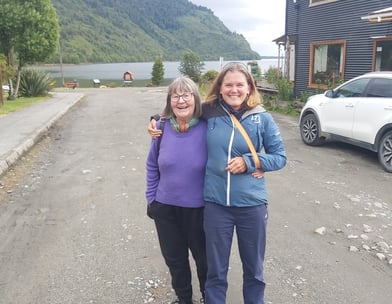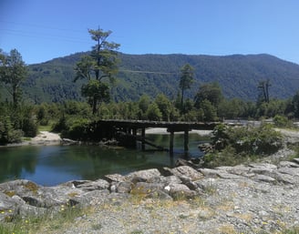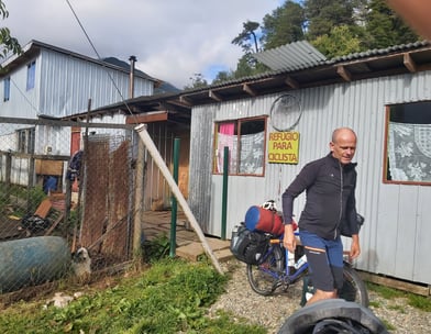 Genau diese Informationen finden wir dann in Form von Luisa Ludwig, die wir beim Spazieren treffen. Sie ist die Tochter eines der deutschstämmigen Ortsgründer und langjährige Hotelbetreiberin. Bereitwillig gibt sie uns Auskunft, dass die schwierigsten 40km inklusive eines steilen Passes nicht asphaltiert seien. Schnell sind wir uns einig, dass es sinnvoll ist, diesen Teil nicht zu radeln beziehungsweise zu schieben, schon weil Connis Arm derzeit nur minimale Belastung aushält. Wir bitten Luisa um Hilfe, und in wenigen Minuten hat sie das halbe Dorf durchtelefoniert und uns einen Transport für morgen organisiert. Dankbar laden wir sie zum Essen ein und genießen ein langes lebhaftes Gespräch, in dem wir sehr viel über die chilenische Gesellschaft lernen.