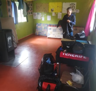 Nach guten 20km kommen wir an einem kleinen Refugio vorbei, trinken einen Kaffee und sind versucht, dort zu bleiben. Aber dann fahren wir doch weiter, über einen 200HM-Aufstieg, bei dem der Wind endlich aus der richtigen Richtung kommt, und erreichen Villa Amengual. Hier gibt es ein Refugio para Ciclista, bestehend aus einem großen Raum mit Matratzen und rudimentärem Bad. Wir dürfen in der Küche der Wirtin kochen, und dann rollen wir uns auch schon am Ofen in die Schlafsäcke ein.