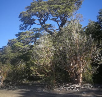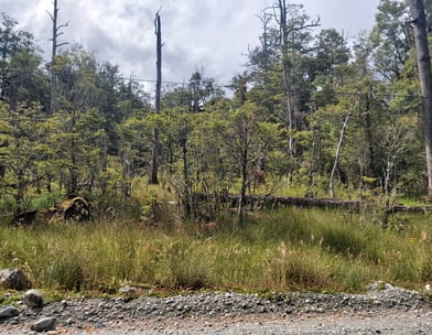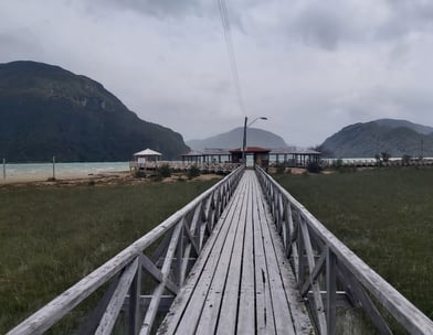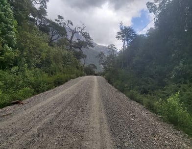 Nach 43km kommt der Abzweig, an dem wir die Carretera offiziell verlassen. Sie geht weiter über Puerto Yungay, von dort mit der Fähre nach Río Bravo, und dann die letzten gut 100km bis nach Villa O‘Higgins. Aber dieser Weg ist uns versagt, die dortige Grenze nach Argentinien ist derzeit unpassierbar, und deshalb führt unser Weg jetzt noch 22km nach Tortel, wo wir am 01.01.2022 die Fähre nach Puerto Natales nehmen wollen.