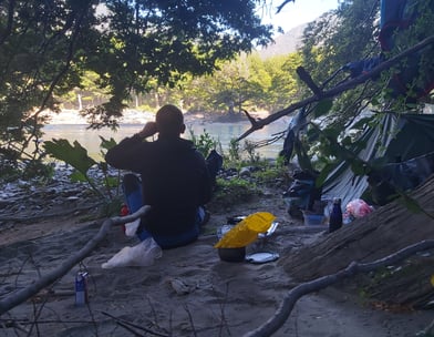 Unser Nachtlagerplatz am Fluss nahe dem Weiler Yungue