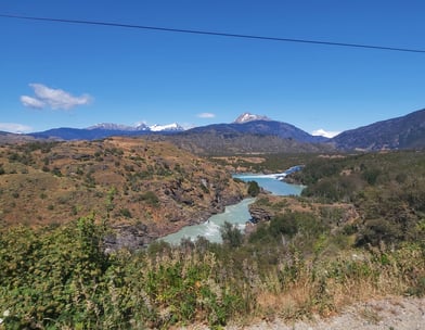 Der weitere Verlauf der Carretera Austral ist in dieser Gegend von Bergen und Flüssen geprägt. Den ganzen Tag geht es steilst bergauf und dann wieder runter, dort ein toller Canon, da ein Zusammenfluss zweier grünblauer Bäche, Gletscher als Hintergrundkulisse.