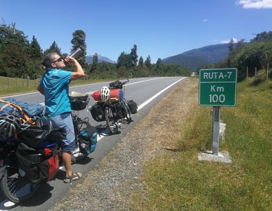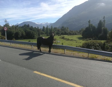 Die Strecke ist so traumhaft schön, dass es sich kaum in Worte fassen lässt. Vergletscherte Berge, Urwald, wilde Flüsse, hunderte Vögel. Es kommt alle 5-10 Minuten ein Auto oder Motorrad vorbei; die meisten winken uns oder hupen anfeuernd. Wir machen nach 45km eine große Rast am Lago Yelcho, schlafen und picknicken. Danach ist es 16 Uhr und trotzdem noch heiß. Wenig später taucht aus dem Nichts ein Hotel auf. Wir beschließen, es für heute gut sein zu lassen. Als wir den Preis für das Doppelzimmer hören, zucken wir kurz. Aber der Flow wird schon wissen, wofür das gut ist.