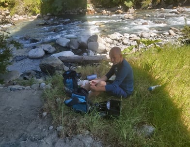 Mittagspause im Brückenschatten: es ist mörderisch heiß!