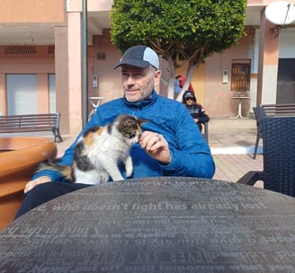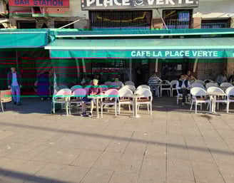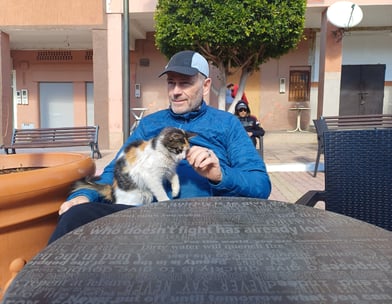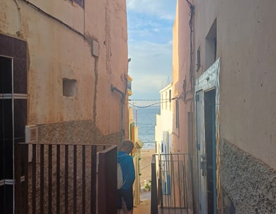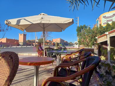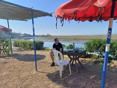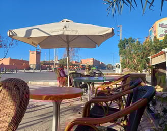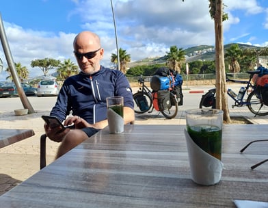 Nächste Station ist Ksar es Seghir, wo uns ein kundiger junger Mann SIM-Karten installiert, auf dass wir wieder mit der Welt verbunden sind, und dann kann ich nicht widerstehen, im selben Restaurant in der Sonne zu Mittag zu essen, wo wir März auf die Heimreise gewartet haben.
