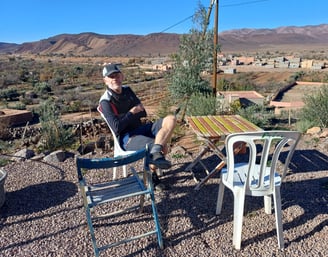Aber von nun wird die Strecke flacher und wir werden schneller. Entlang der Straße begegnen wir einer Menge kleiner und mittelgroßer Rotzlöffel, die johlend mit ihren Rädern neben uns herflitzen wollen; aber wir hängen sie alle ab, sind auf Ankommen programmiert. Der Nachmittagskaffee lässt sehr lange auf sich warten, denn die Straße ist zwar von jeder Menge Häusern gesäumt, aber das gastronomische Angebot ist äußerst dürftig. Als wir endlich ein Hotel mit Café finden, sind wir schon richtig platt. Der Wirt fragt uns, ob wir auch über Nacht bleiben wollen. Auf unsere Antwort, dass wir heute bis Zagora fahren wollen, antwortet er lachend, dass sei doch hier! Und tatsächlich sind es plötzlich nur noch knapp 10km bis zu unserer Unterkunft! Irgendwie sind uns 10km durch die Lappen gegangen, zum ersten Mal in diesem Urlaub ist unsere Etappe kürzer als geplant.