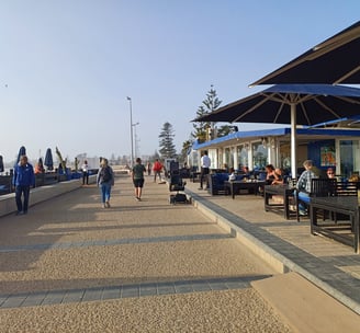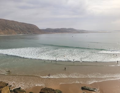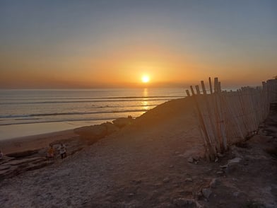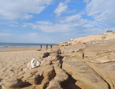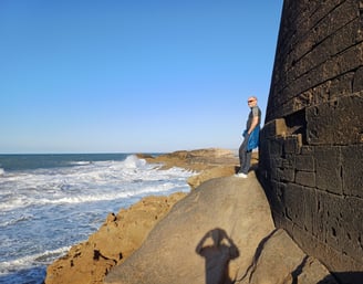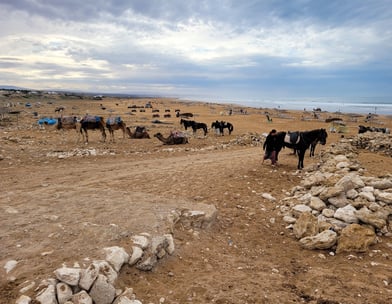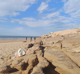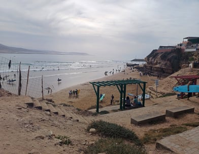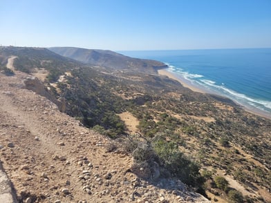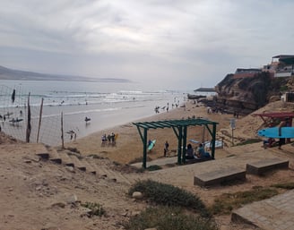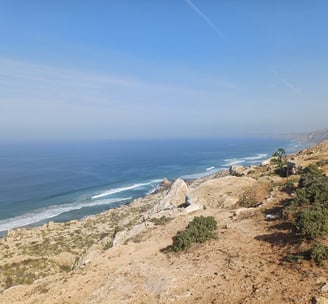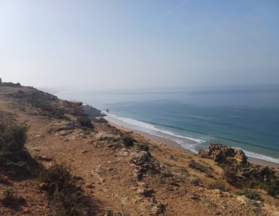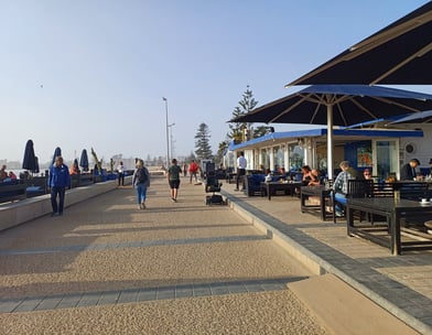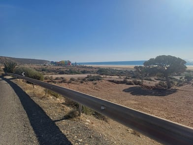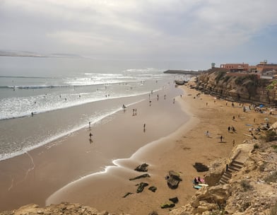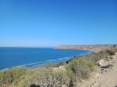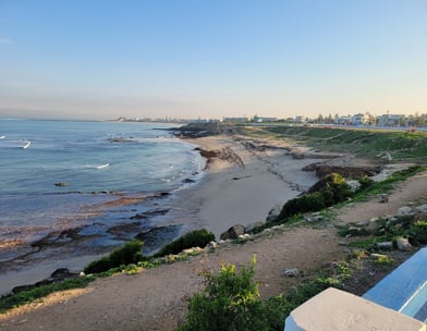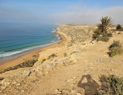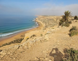 Wie erwartet, haben wir aus Casablanca raus viel Verkehr und wenig Spaß. Das ist in allen Großstädten der Welt gleich. Mehrere Stunden lang fahren wir durch Baugebiete, in denen Luxuswohnanlagen mit Anschluss ans Meer geplant sind oder schon gebaut werden. Wir fragen uns, wer dort überall wohnen soll! Es stinkt nach Müll und Abgasen. Eine Weile können wir auf eine Strecke direkt am Meer ausweichen. Hier gönnen wir auch unseren ersten Kaffee.