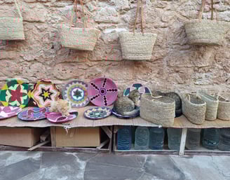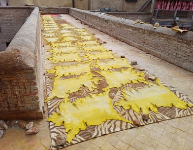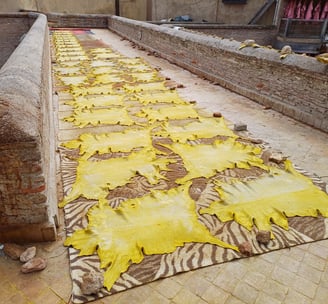 Um halb zehn sind wir wieder zum Frühstück wach und gehen gleich danach in die Medina. Von ihr sind wir wirklich begeistert, laufen viele Stunden durch die völlig verwinkelten Gassen mit tausenden winzigen Läden und Lokalen. Eine Weile folgen wir einem Mann, der uns durch das Gerberviertel führt und alles erklärt. Die Währung, mit der er den Zutritt zu den einzelnen Werkstätten bezahlt, ist Haschisch, offensichtlich ein wichtiger Werkstoff für diese harte und ungesunde Arbeit.