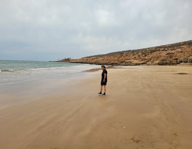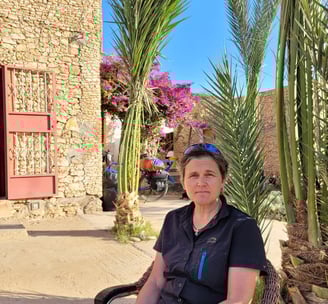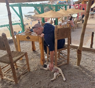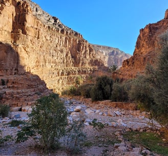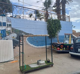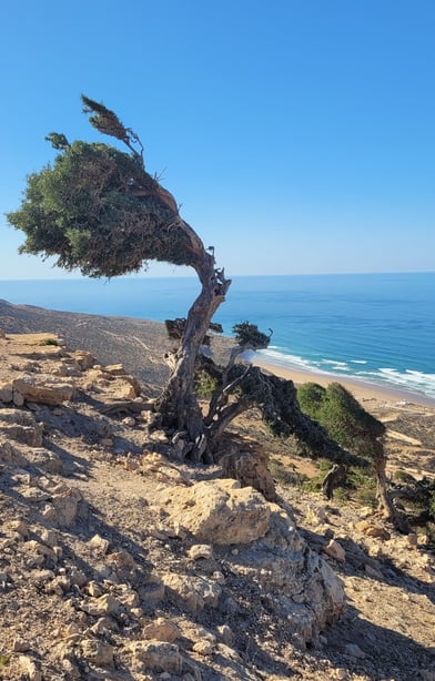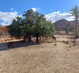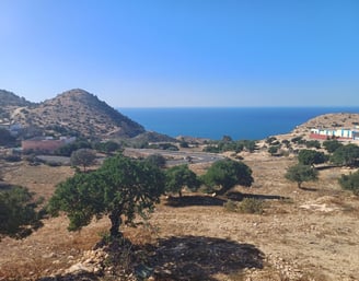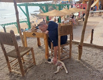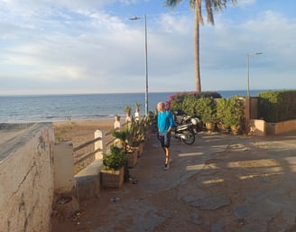 Wir sehen über derlei Kleinigkeiten hinweg und fühlen uns wie zuhause. In den sehr warmen und sehr sonnigen nächsten zwei Tagen vertreiben wir uns die Zeit mit Schlendern und Wandern in der Umgebung, shoppen kleine Geschenke für die Daheimgebliebenen, Essen üppig in unserer Küche und in den umliegenden Restaurants und schließen Freundschaft mit Yussef, einem hier ansässigen Schmuckhändler. Ich gehe sogar zweimal morgens zum Laufen und hole mir dabei einen extrem scheußlichen Muskelkater. Sport und Turnen füllt Gräber und Urnen....