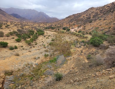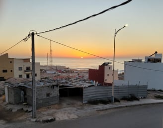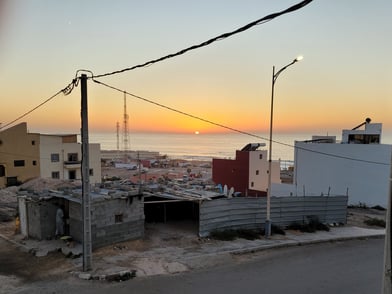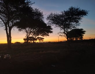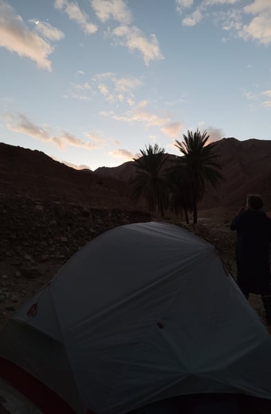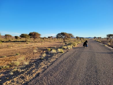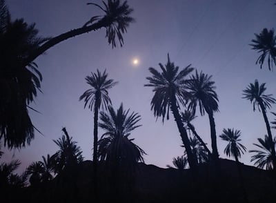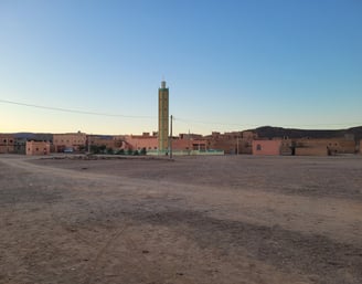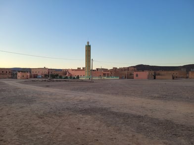 Wir erreichen erst in der Abenddämmerung das erste Dorf auf unserer Wüstenstrecke