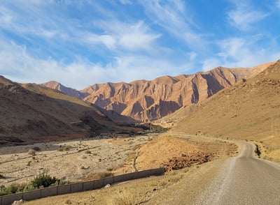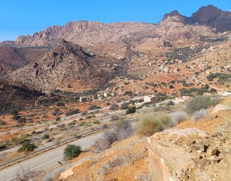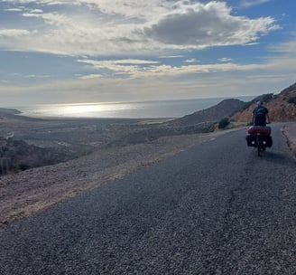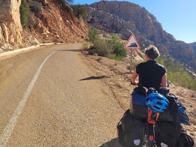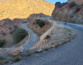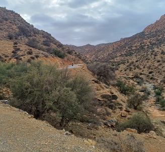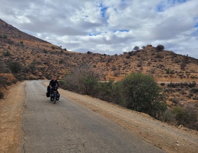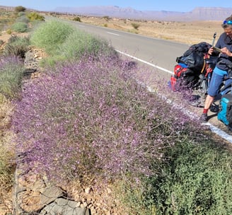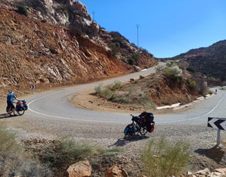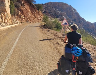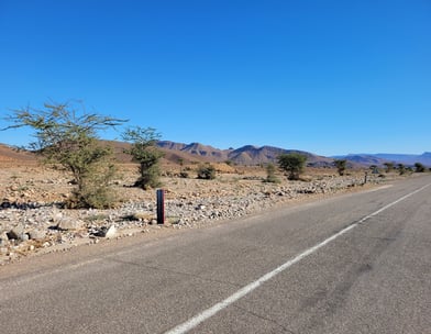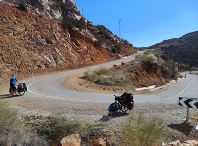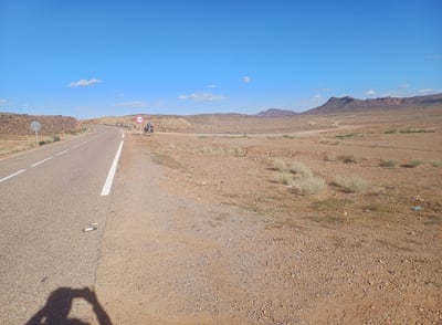 Wir folgen diesem Rat, und das ist unser Glück. Denn es gibt, unglaublich, aber wahr, einen durchgehenden Radstreifen entlang dieser Straße, und der Belag ist bis auf wenige Kilometer perfekt. Und da wir heute während des gesamten Tages den Wind im Gesicht haben, verlangt uns die Strecke auch unter diesen optimalen Bedingungen sehr viel ab! Wären wir dem anderen Weg gefolgt, hätten wir es heute wohl nicht bis Zagora geschafft, und schön ist es auf dieser Seite auch!