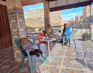 (C) Wir haben es gar nicht eilig heute, da der Bus, den wir in Rissani nehmen wollen, erst um 20 Uhr losfahren soll und es nur ca. 40km bis dort sind. Wir trödeln also bei Frühstück und Aufpacken herum und sind gegen 11 Uhr abfahrtbereit.